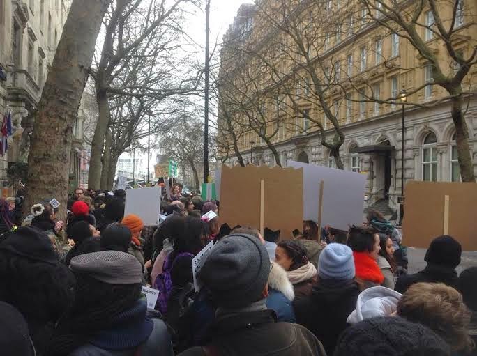 Nigerians in London staged a protest in front of the Nigerian House in the UK today January 25th to register their support for the people of Baga, in Borno state following recent attacks in the community where many people have been killed and abducted.